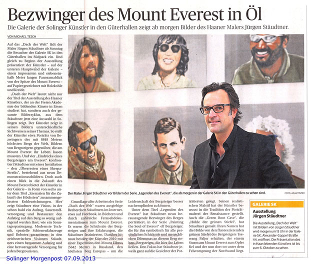 Pressestimmen zu Solinger Ausstellung Ein Kommentar / Allgemein / 2013-10-07 Solinger Morgenpost vom 7.9.2013 Solinger Tageblatt vom 7.9.2013 Hallo Haan vom September 2013